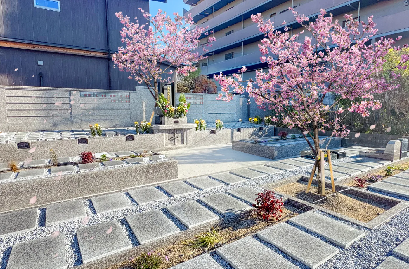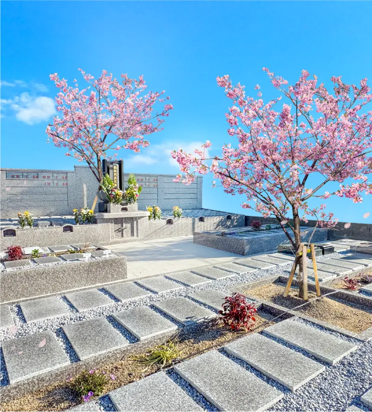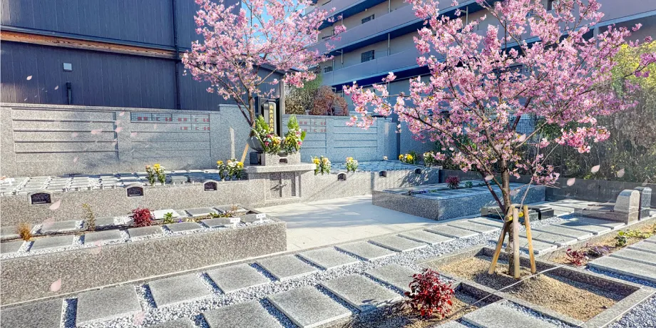街中にありながら静かで自然豊か、日当たりの良い環境が広がり、喧騒を忘れて心穏やかにお参りいただけます。寺院が永代にわたり大切なお墓を見守り、安心してご供養を任せられる霊苑です。