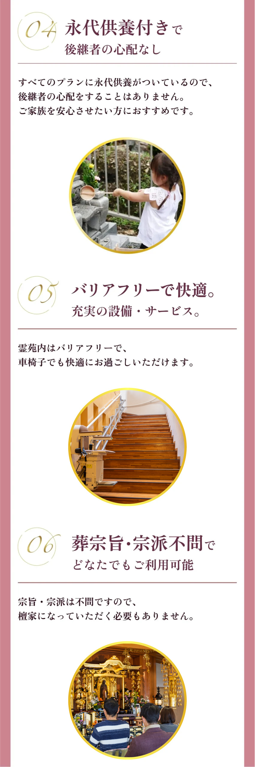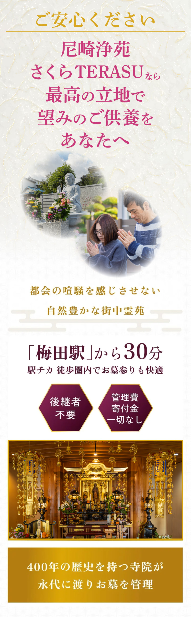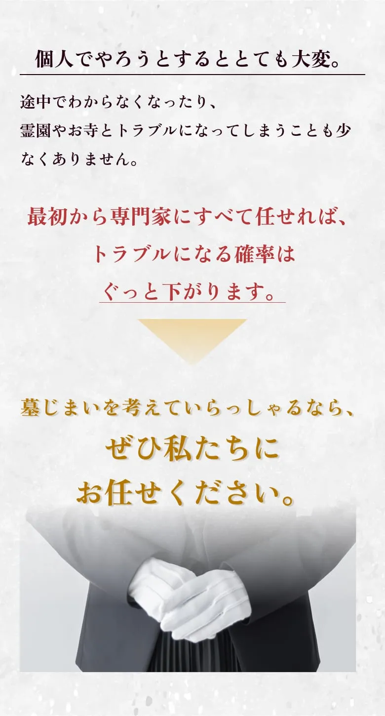 人口減少や檀家離れ、無宗教化といった社会背景の中、全国的に「寺院消滅」の危機が囁かれています。お墓の需要や価値観・ライフスタイルも日々変化する中、これからのお墓の在り方をより深く探求すると共に、寺院様の更なる可能性を求めて、寺院様をサポートしております。