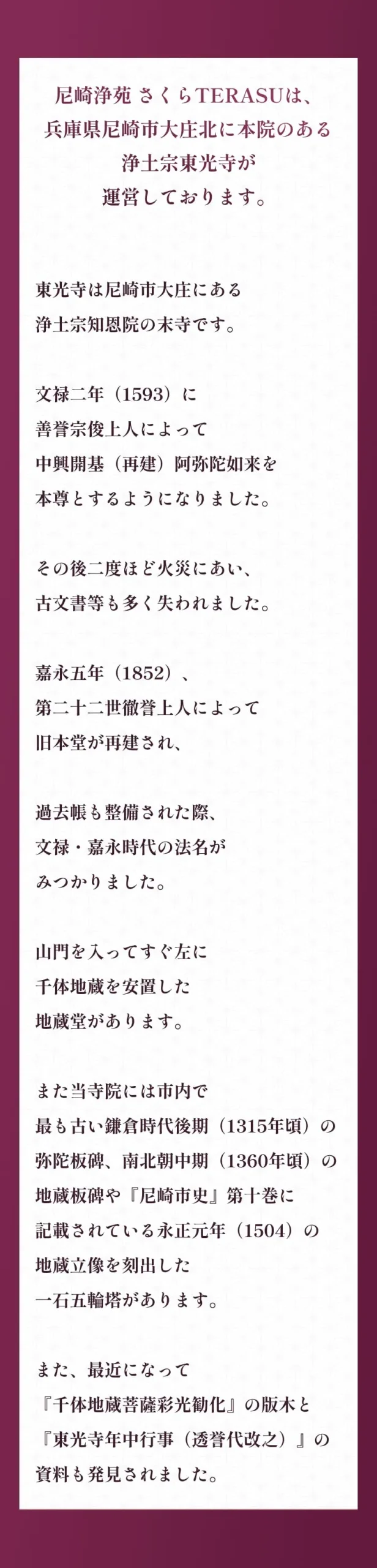私たちテラスは、永代供養墓と樹木葬を基軸とした霊園開発・納骨堂開発、あるいはメディア、葬儀事業を通じて、寺院様の永続的な運営を複合的にサポートしています。